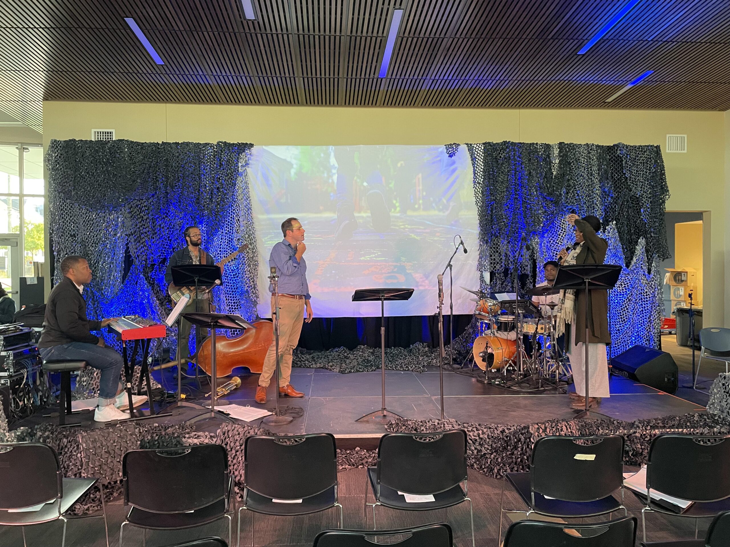 On June 17, 2023, Dominick Farinacci and the musicians of of Modern Warrior EXPERIENCE partnered with Towards Employment and four Clevelanders for a watch party of the first full performance of A Work & Reentry EXPERIENCE hosted at in the Greg L. Reese Performing Arts Center at the East Cleveland Public Library. A Work & Reentry EXPERIENCE performance was made possible through the contributions of Char & Chuck Family Foundation.