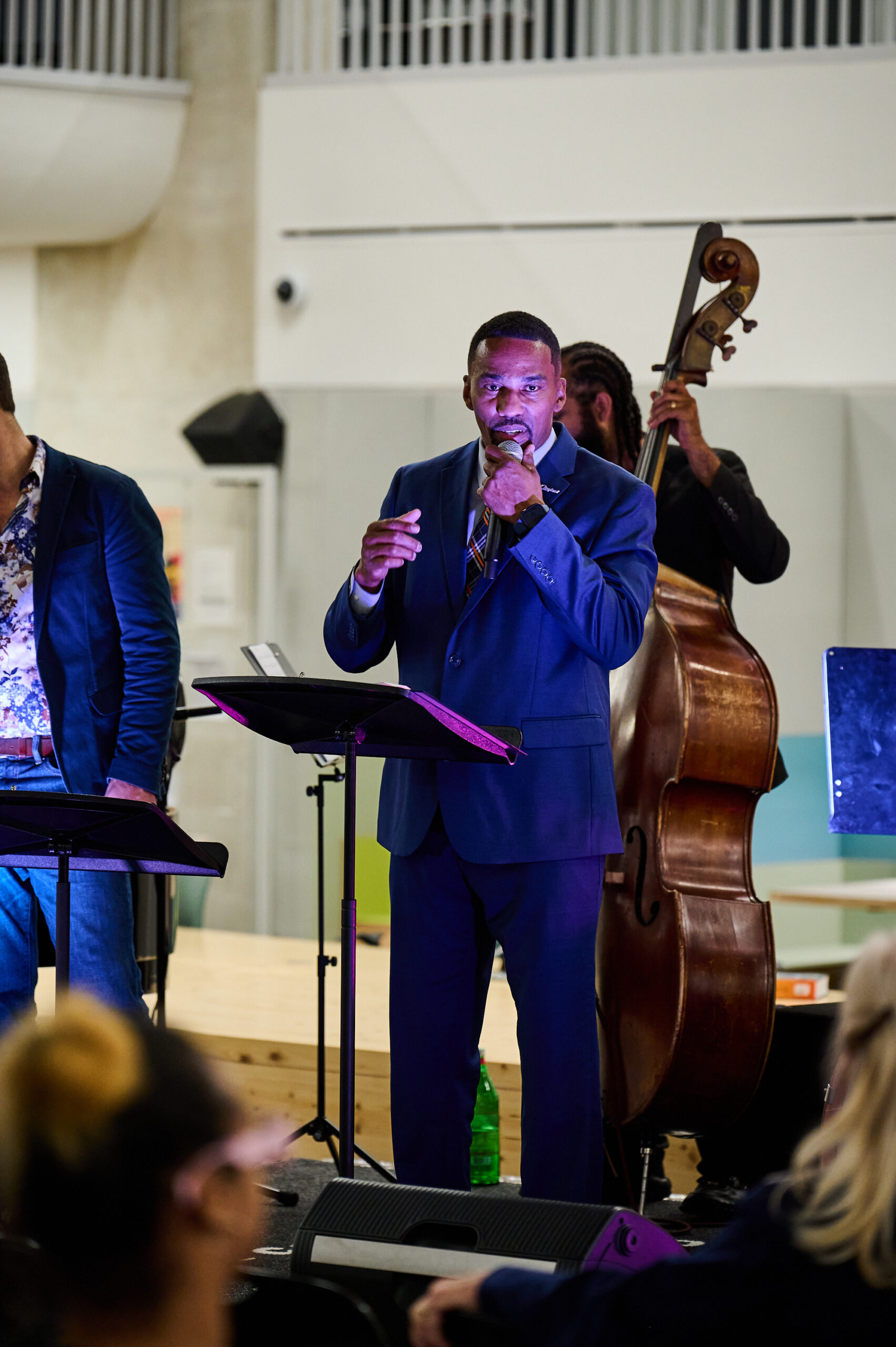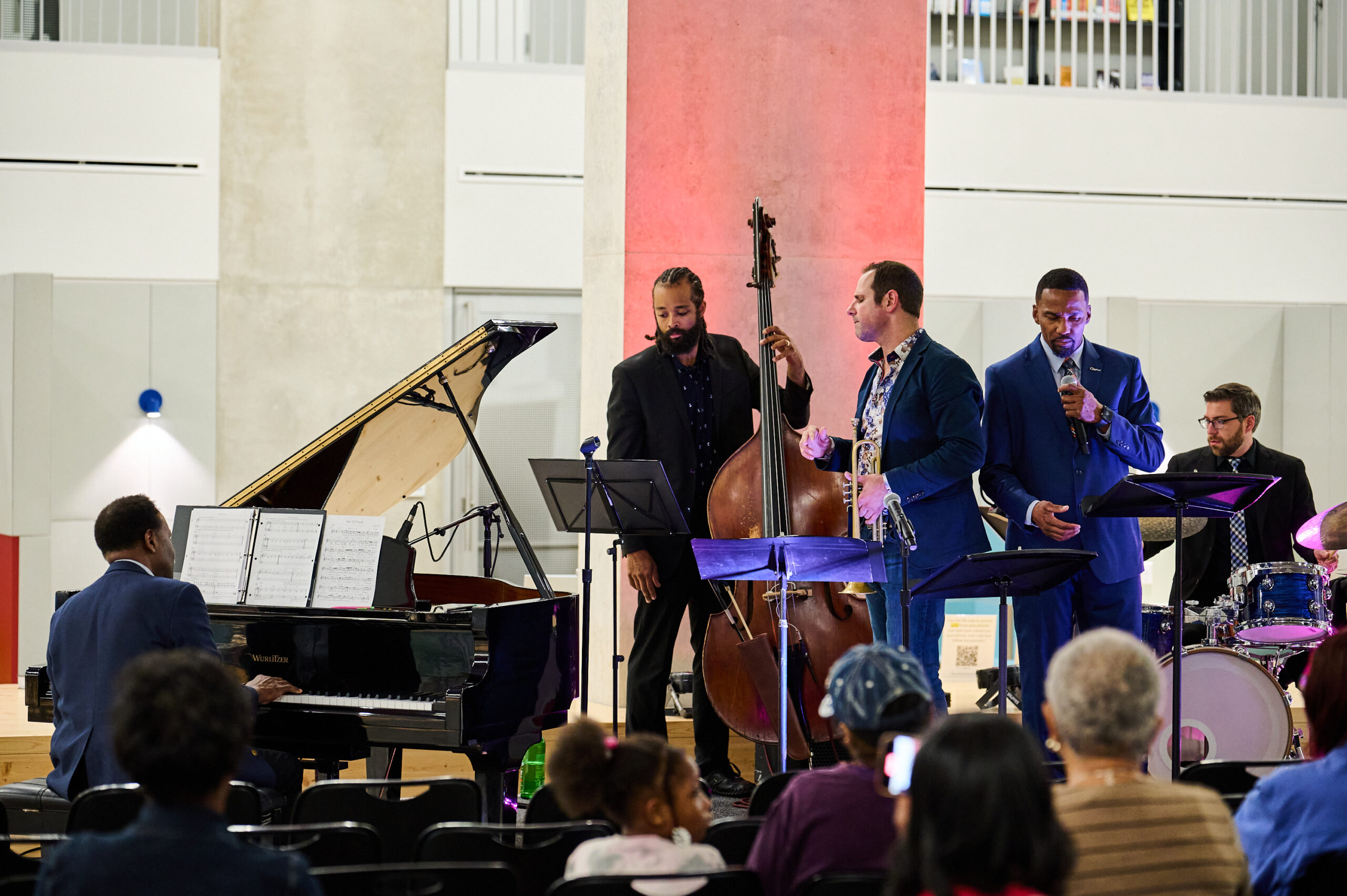 On October 28, 2024, Dominick Farinacci and the musicians of Modern Warrior EXPERIENCE partnered with Towards Employment and four Clevelanders for a free performance of A Work & Reentry EXPERIENCE hosted at the Cleveland Public Library's newly opened Hough Library Campus.
